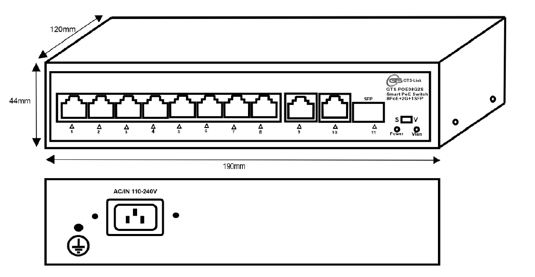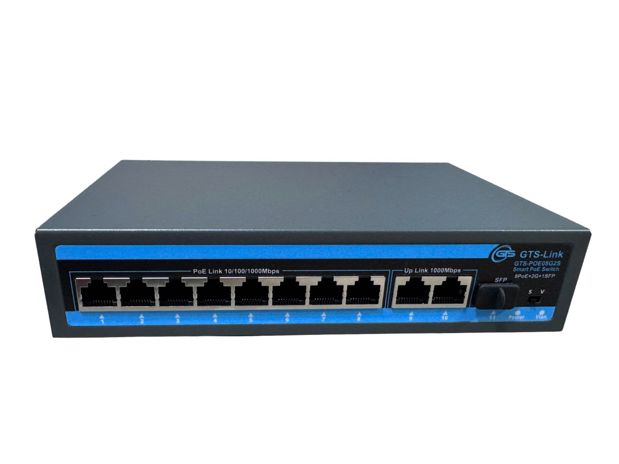 8 Cổng PoE+ Gigabit + 2 Cổng uplink Gigabit + 1 Cổng uplink SFP